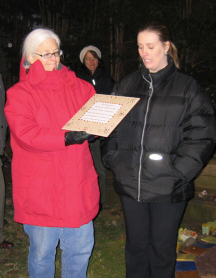NJ Peace Action dir Madelyn Hoffman (South Orange Trustee Eric DeVaris in front)
